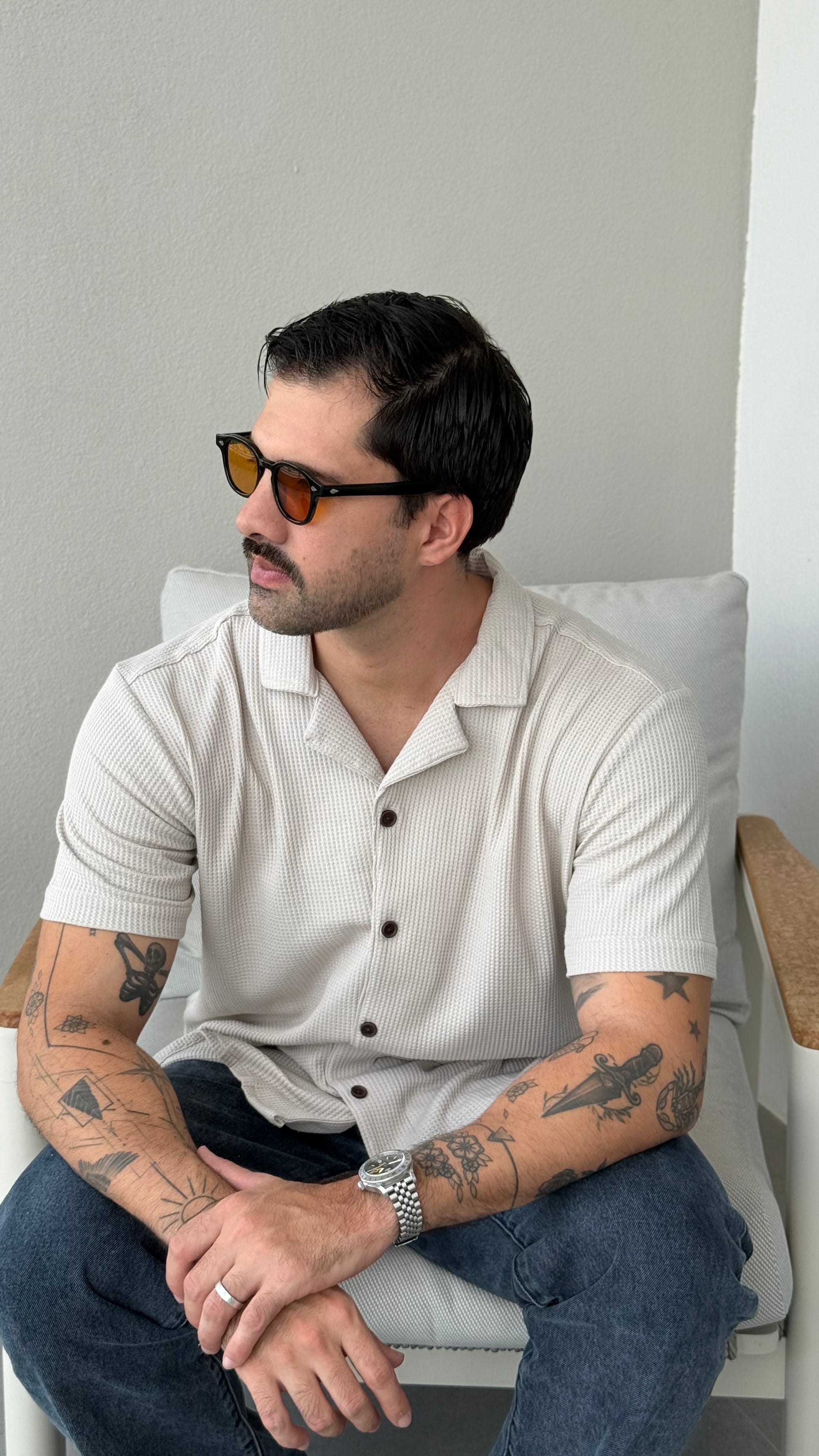 El patrón tejido en forma de waffle es el elemento más destacable de esta nueva camisa. Las texturas le dan toque de sofisticación a tus outfits, sin ser demasiado formal o informal.