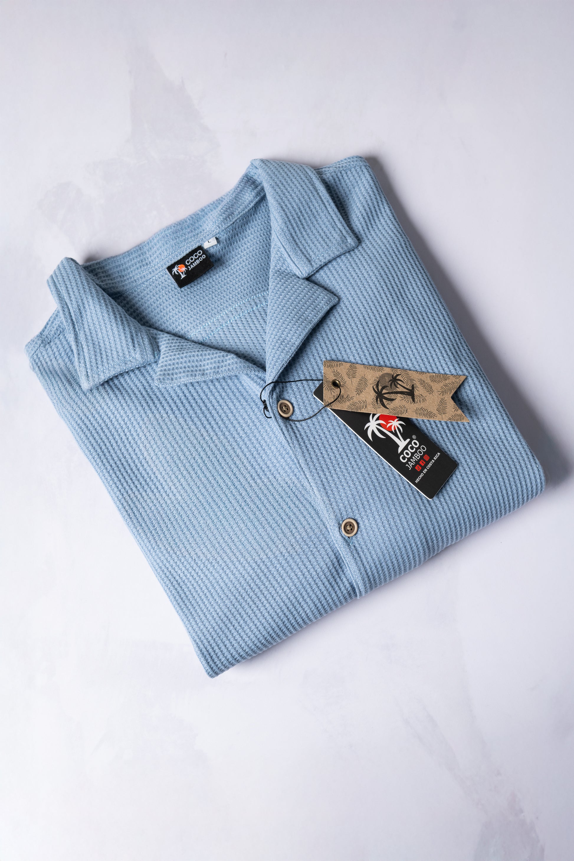 El patrón tejido en forma de waffle es el elemento más destacable de esta nueva camisa. Las texturas le dan toque de sofisticación a tus outfits, sin ser demasiado formal o informal.