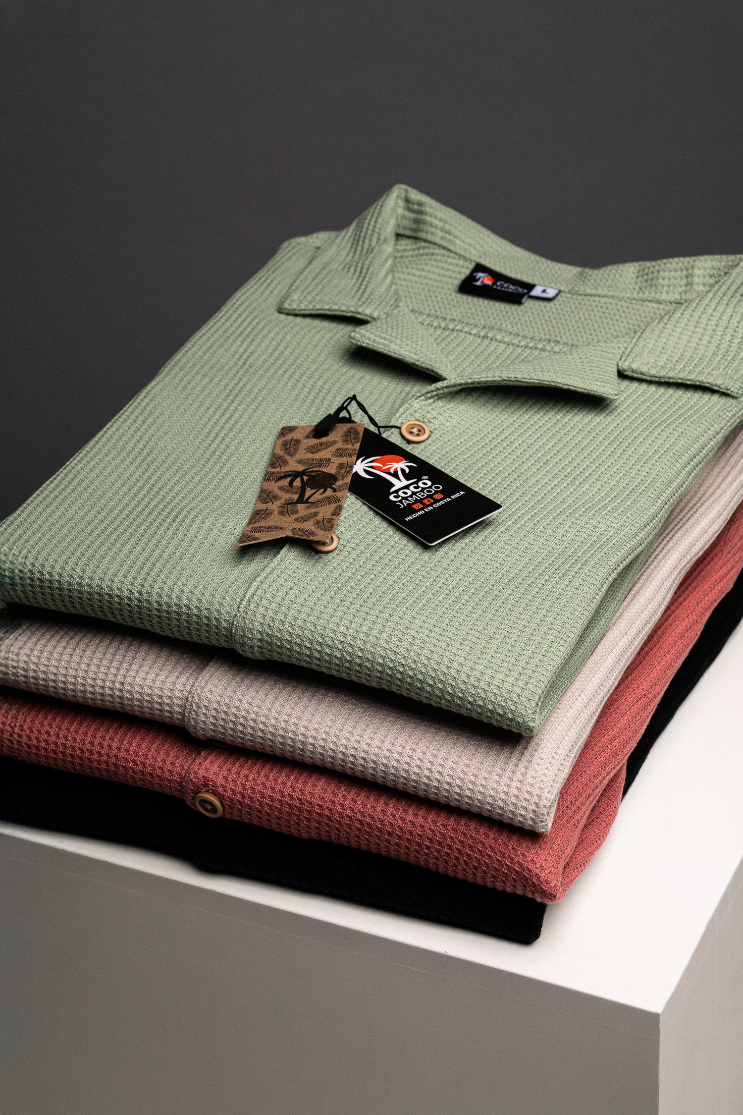 El patrón tejido en forma de waffle es el elemento más destacable de esta nueva camisa. Las texturas le dan toque de sofisticación a tus outfits, sin ser demasiado formal o informal.