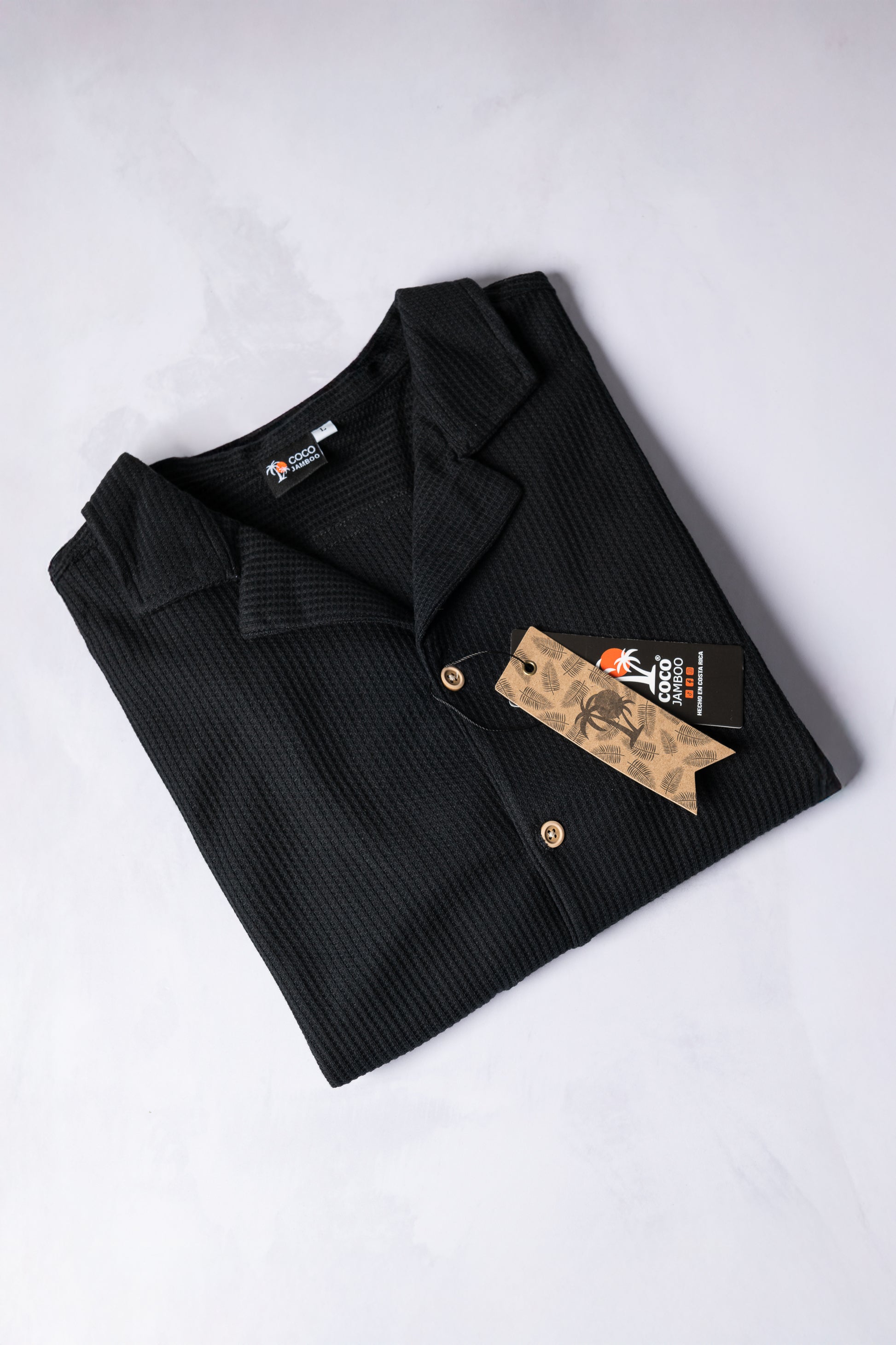 Camisa con textura de waffle color negro con cuello cubano